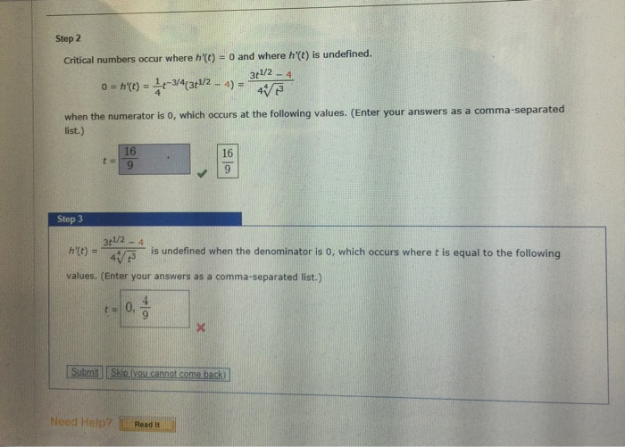 Solved Step 2 Critical Numbers Occur Where H T 0 And Chegg Com
